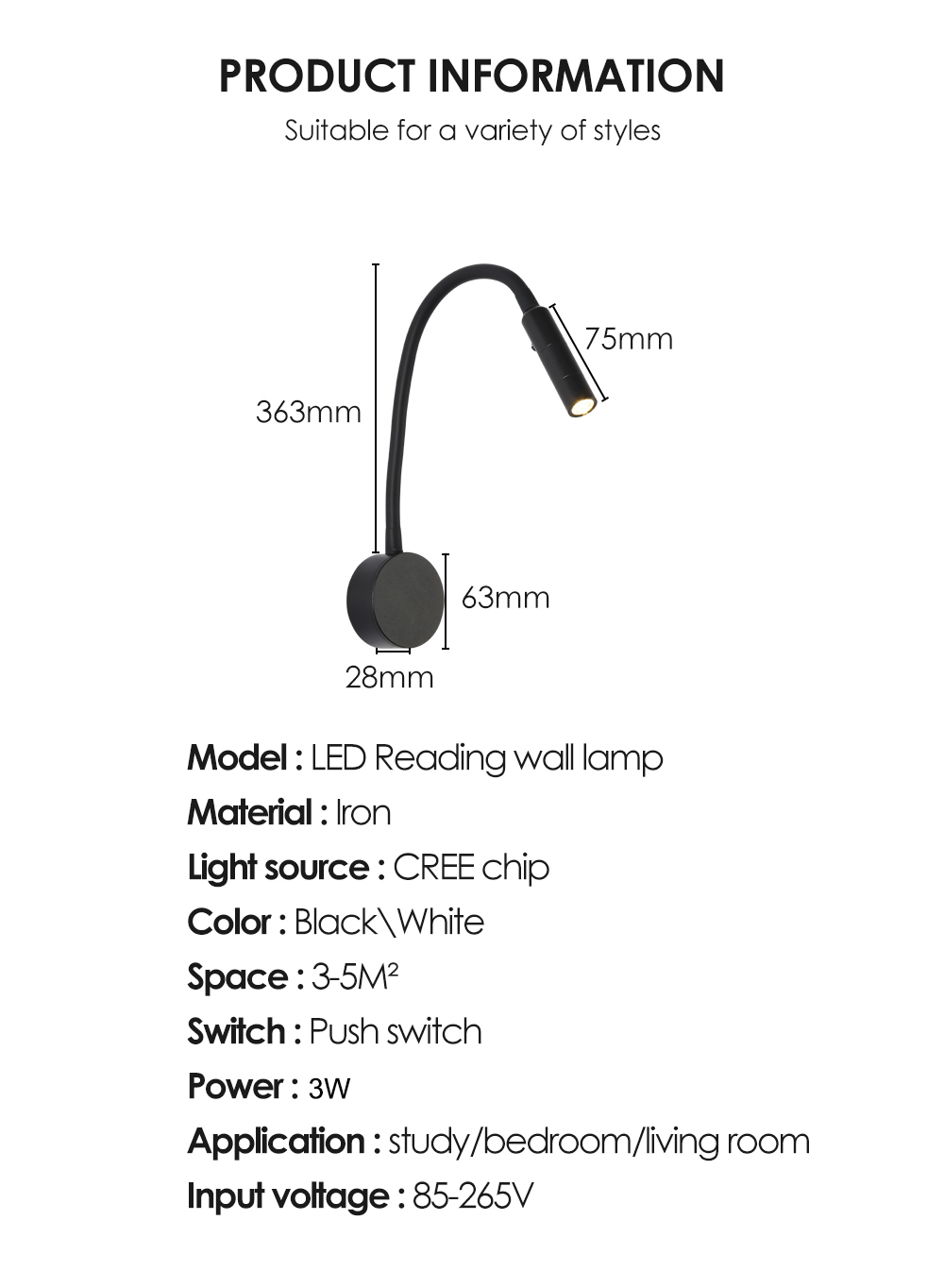 Product name: Adjustable Wall Reading Lamp Light Fixtures