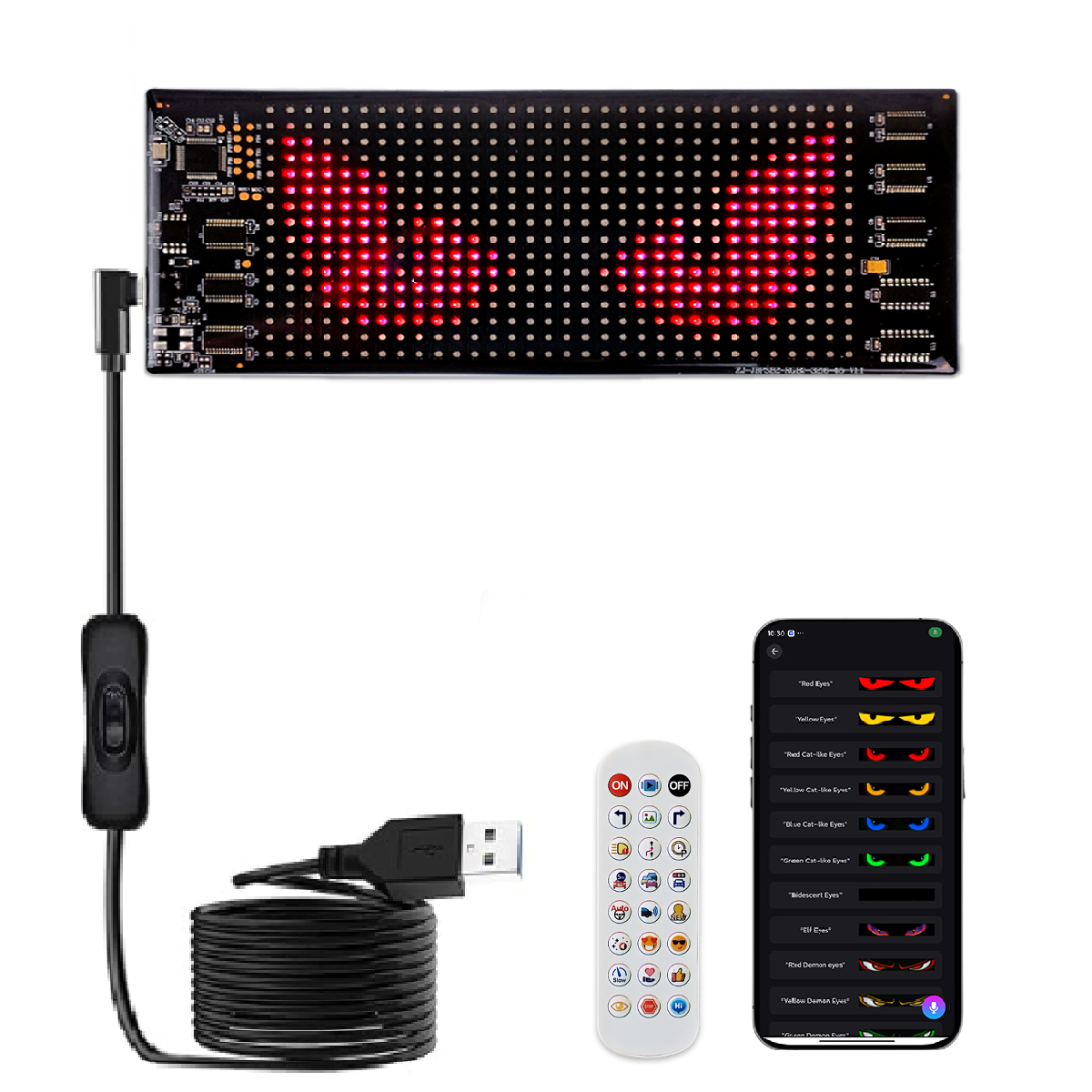 LED Matrix Display Panel, Devil Eyes Light for Cars Windshield, Programmable LED Scrolling Sign, Advertising Sign with Remote + APP+ Voice Control, DIY Pattern Animation